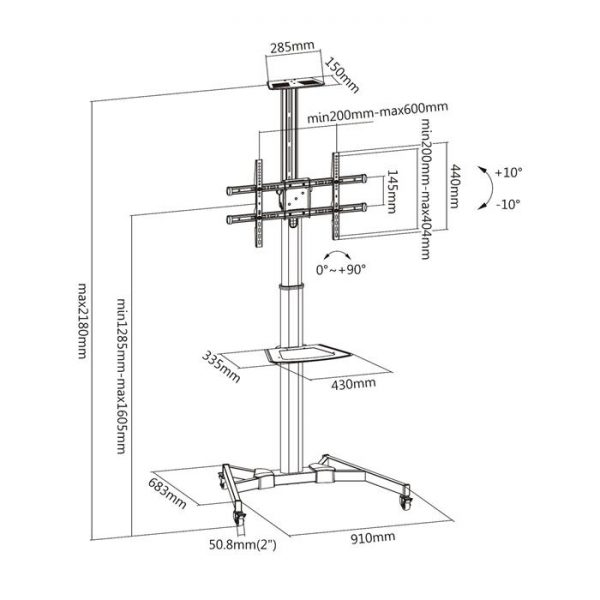 | Compatibilité TV | 37’’ – 70’’ (94-178 cm) |
